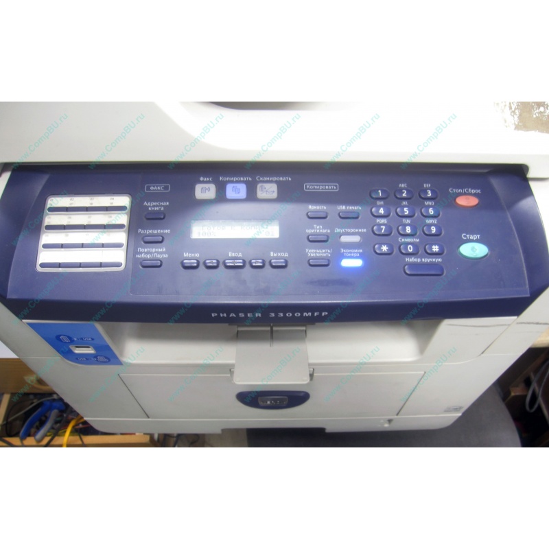Б/У чёрно-белое МФУ Xerox Phaser 3300MFP (принтер, сканер, копир, факс). Есть Ethernet порт (может работать как сетевое). Печатает 28 страниц в минуту. Ресурс - 25000 страниц в месяц.